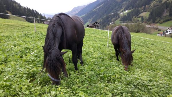 Wir bewitschaften unseren Hof mit 10 Milchkühen, 14 St. Jungvieh, 1 Schwein und den Norikern; Stute Storella geb. am 27.3.2011 M: Silvana V: Franko Elmar, Stute Stella geb. am. 28.3.2016 M: Storella V: Stubai Vulkan